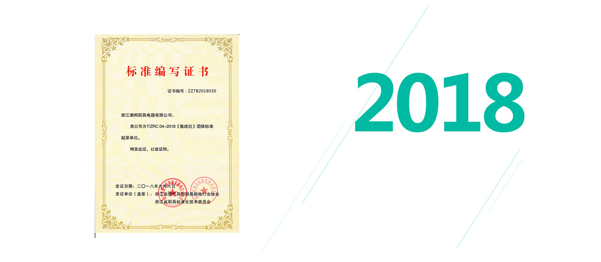 潮邦集成灶被浙江省燃氣具和廚具廚電行業協會授予T/ZRC 04-2018《集成灶》團體標準起草單位