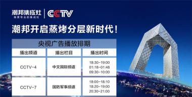 昨日,潮邦集成灶品牌宣傳片于晚間18:00,18:20,20:40左右在CCT0V-7正式播出,后續(xù)CCTV-4的品牌廣告片將于10月11日持續(xù)播出。這個十