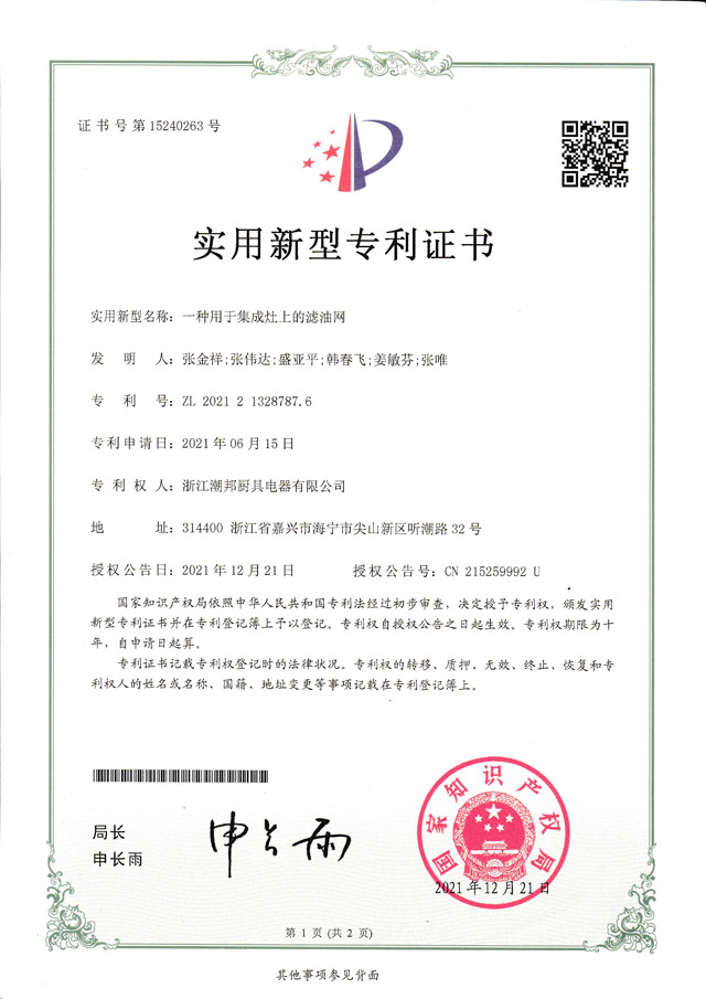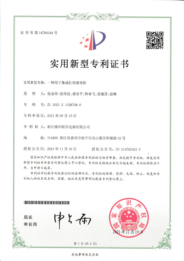 為了創造健康舒適的廚房體驗,我們不斷在廚電產品研發上精益求精。 2009年至今,潮邦獲得近百項發明專利和證書,同時獲得國內眾多獎項,穩居廚電行業翹楚,開創中國集成廚房新時代。