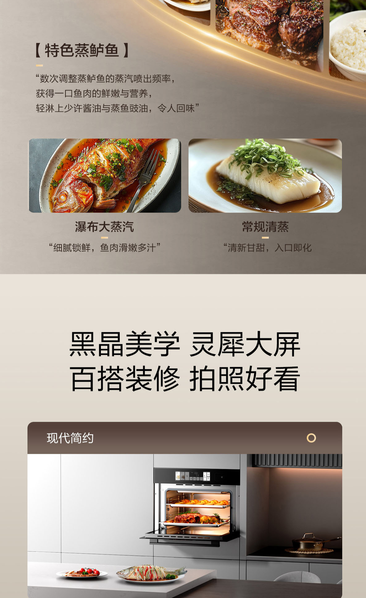 靈犀炫彩大屏,48L大容量,十二大專業(yè)蒸烤模式,上下雙管烤,直噴瀑布蒸汽,全304食品級不銹鋼,一鍵高溫殺菌
