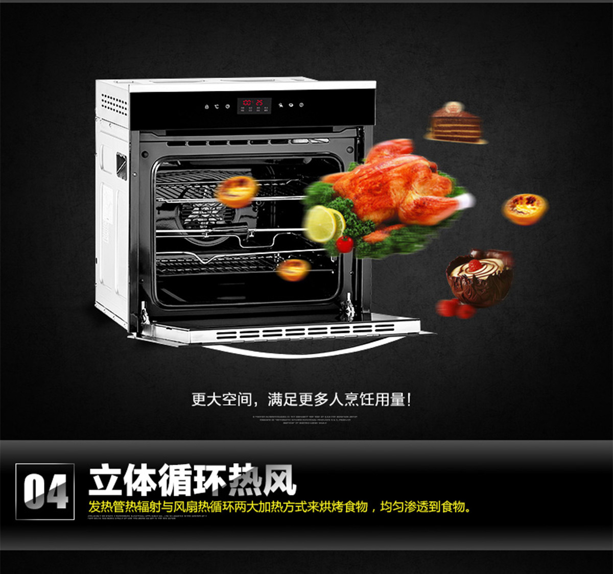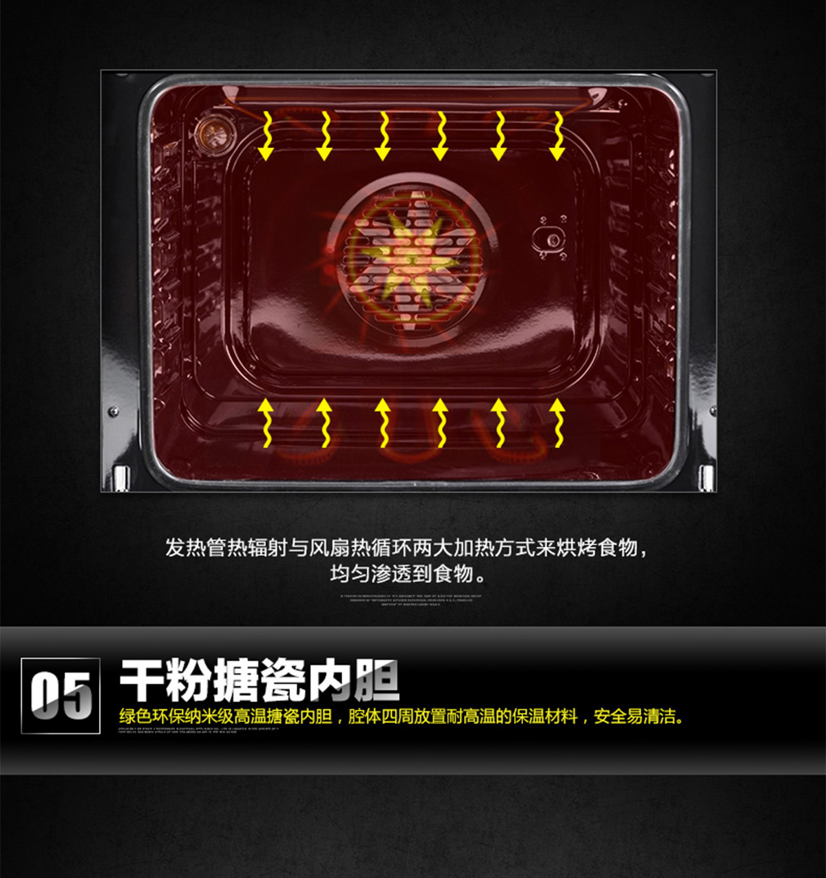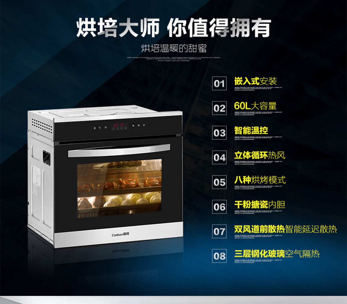 60L大容量;內(nèi)置全自動(dòng)精確控溫探頭;立體循環(huán)熱風(fēng);高溫搪瓷內(nèi)膽;