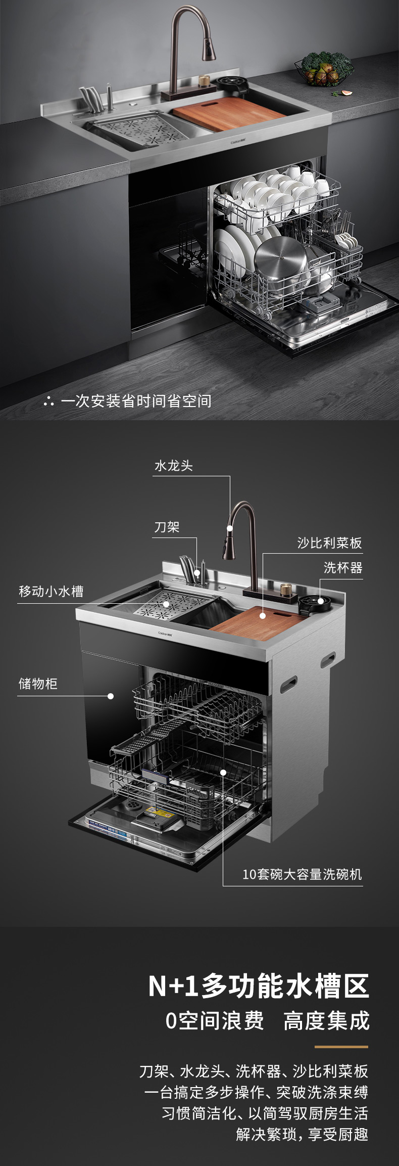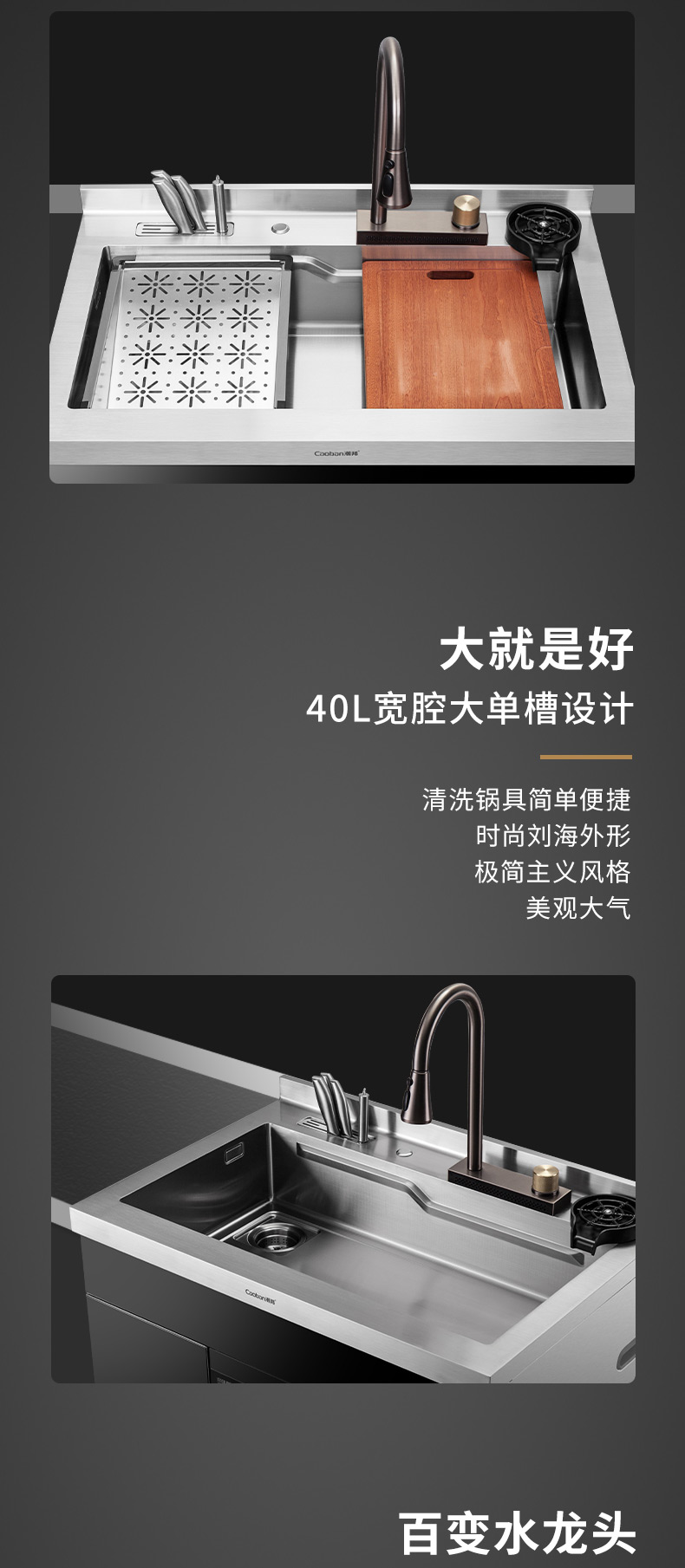 40L大容量水槽,可變伸縮式水龍頭,便捷洗杯器,洗碗機,主動強排設(shè)計