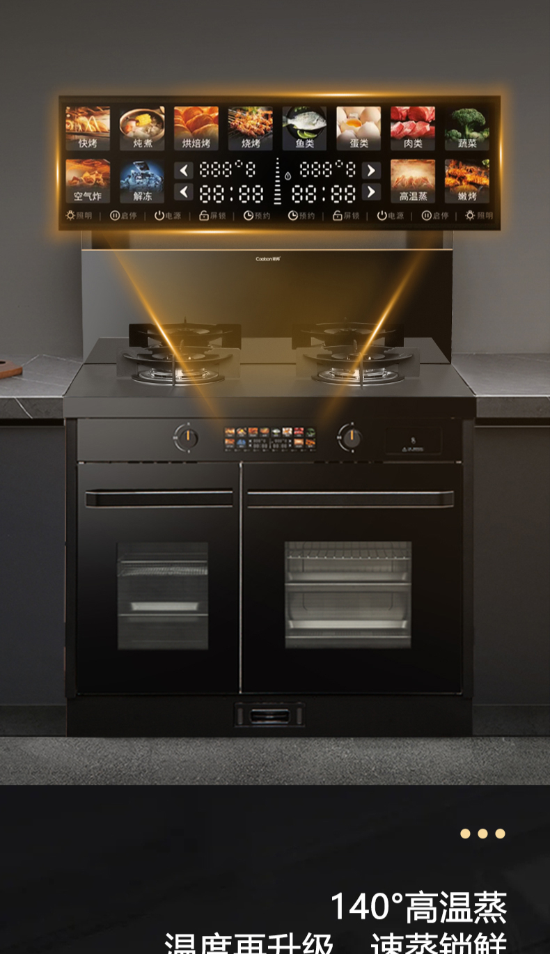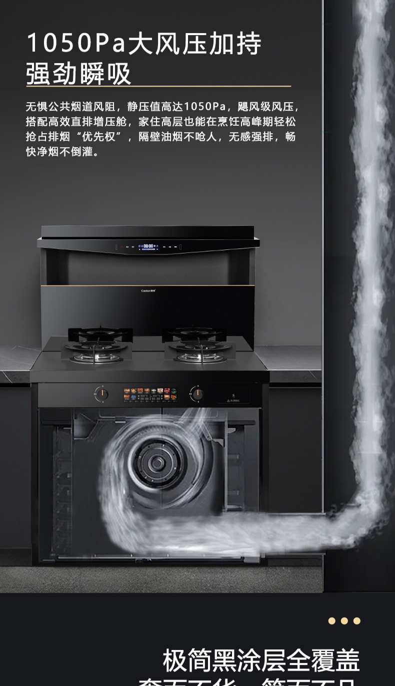 蒸烤同步|1050Pa風(fēng)壓|智能變頻電機(jī)|揮手智控|曲面滑體無(wú)縫風(fēng)道|無(wú)縫瓷膜內(nèi)膽|一鍵熱融清洗|5 0kW大火力| 27m3 min巡航風(fēng)量| 智能預(yù)約功能