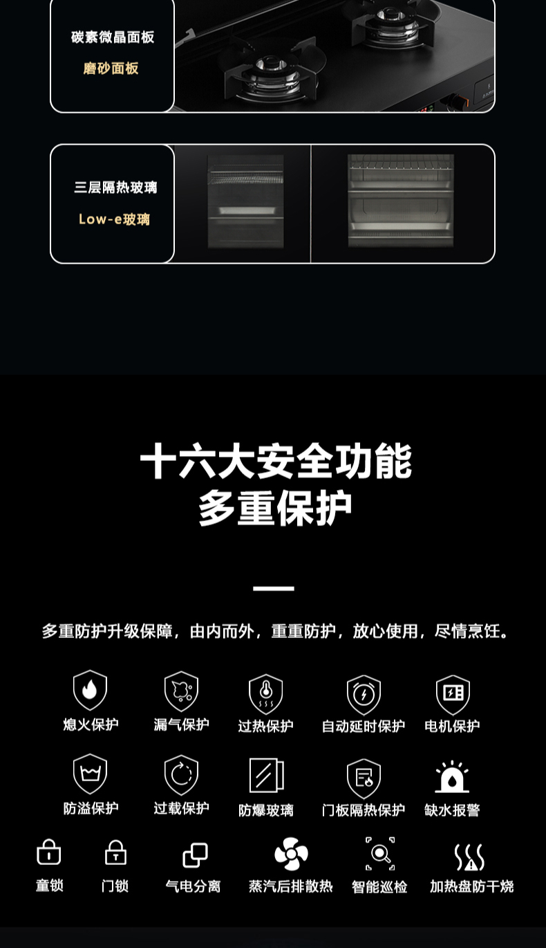 | 蒸烤箱加熱方式 | 蒸汽+加熱管 | 蒸烤箱額定功率(W) | 2800 | |