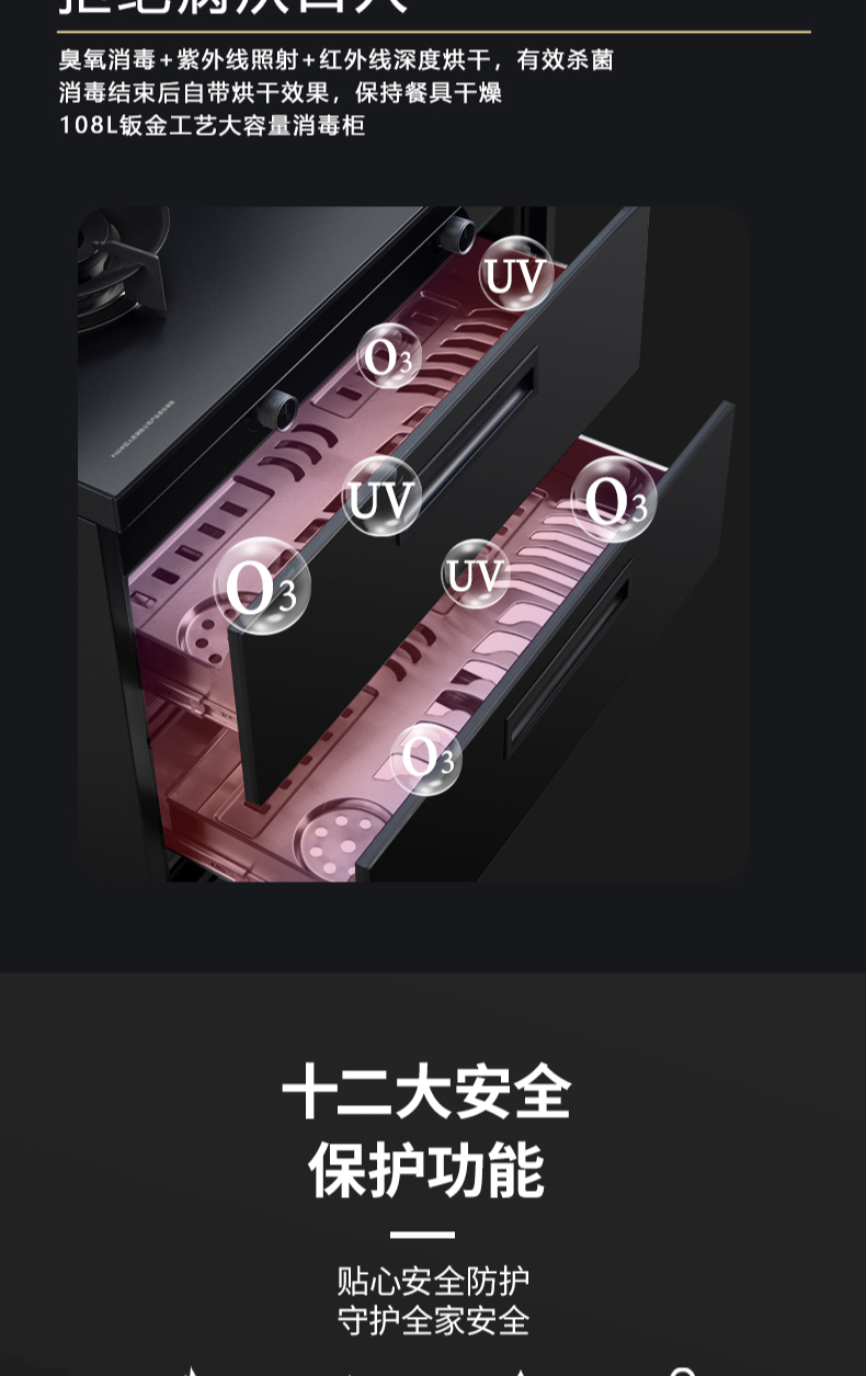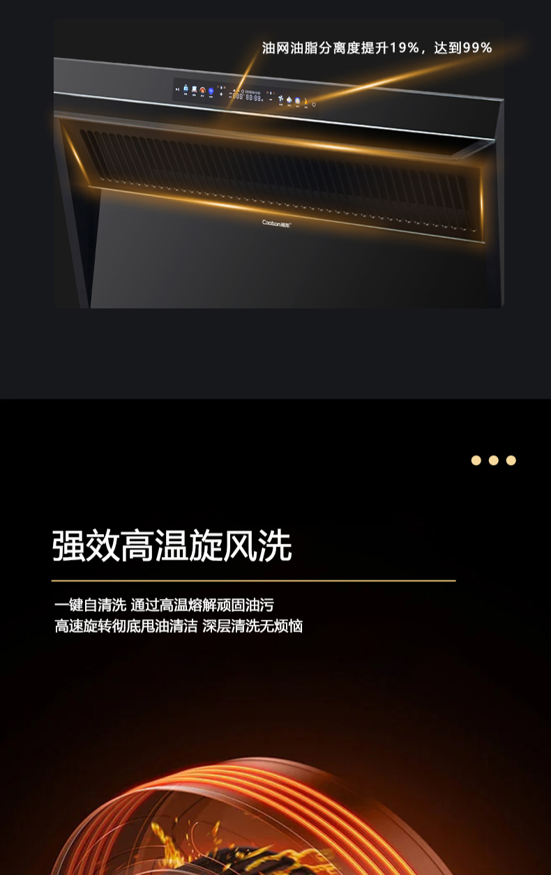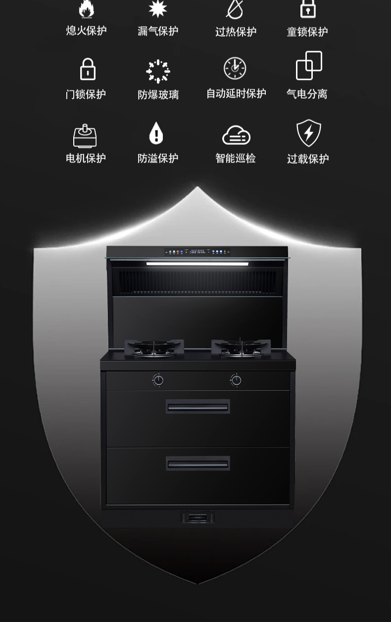 廚房七合一,26方超大巡航風(fēng)量,雙核驅(qū)動變頻控制,5kW大火力,揮手智控,電熱自清潔