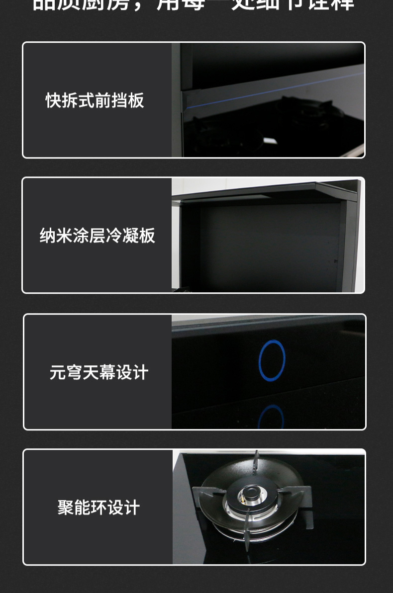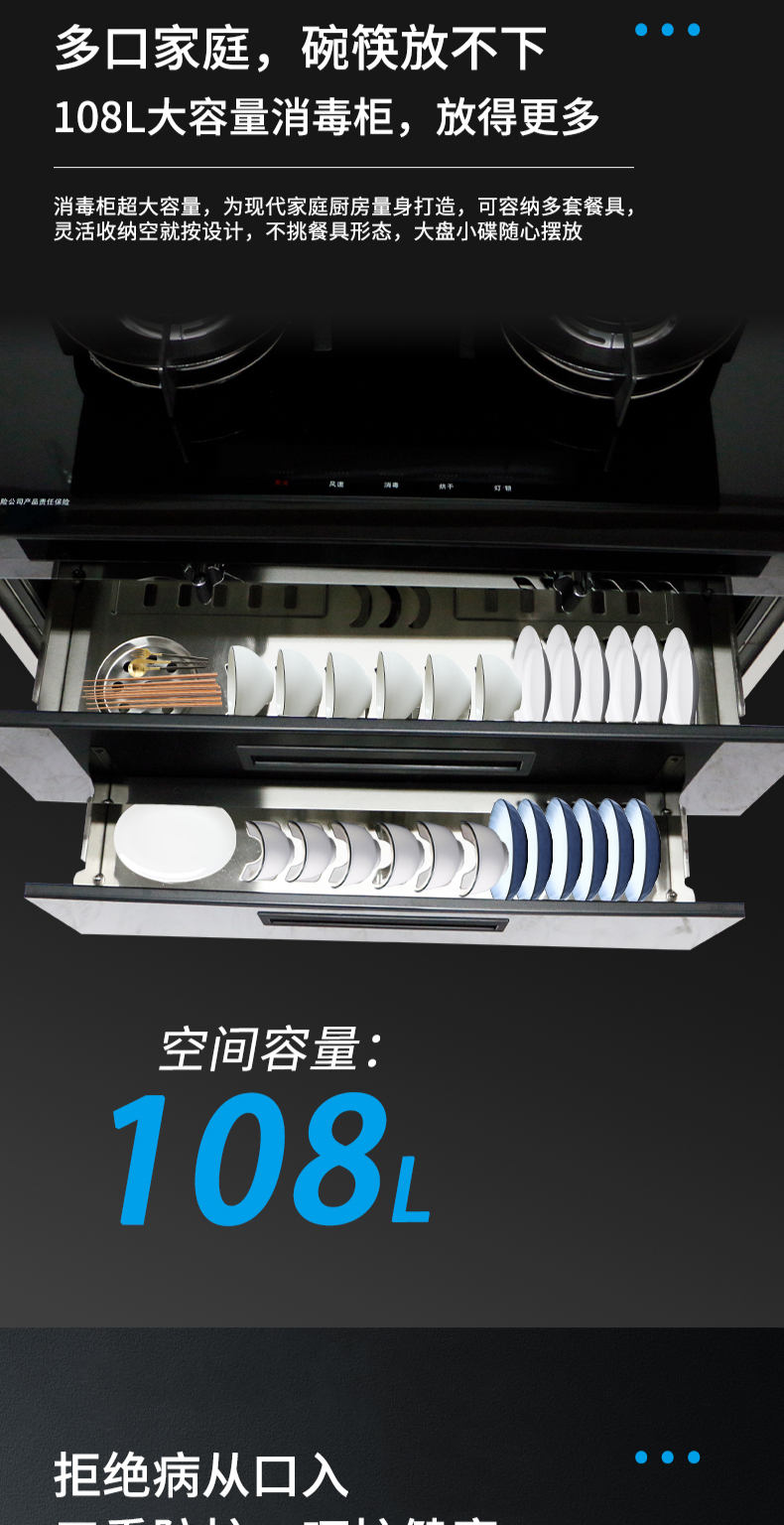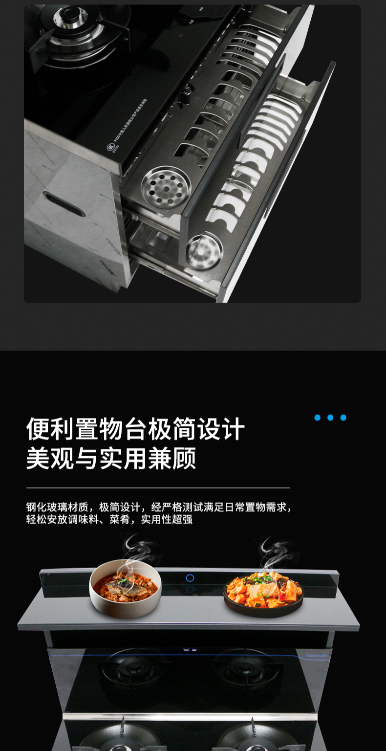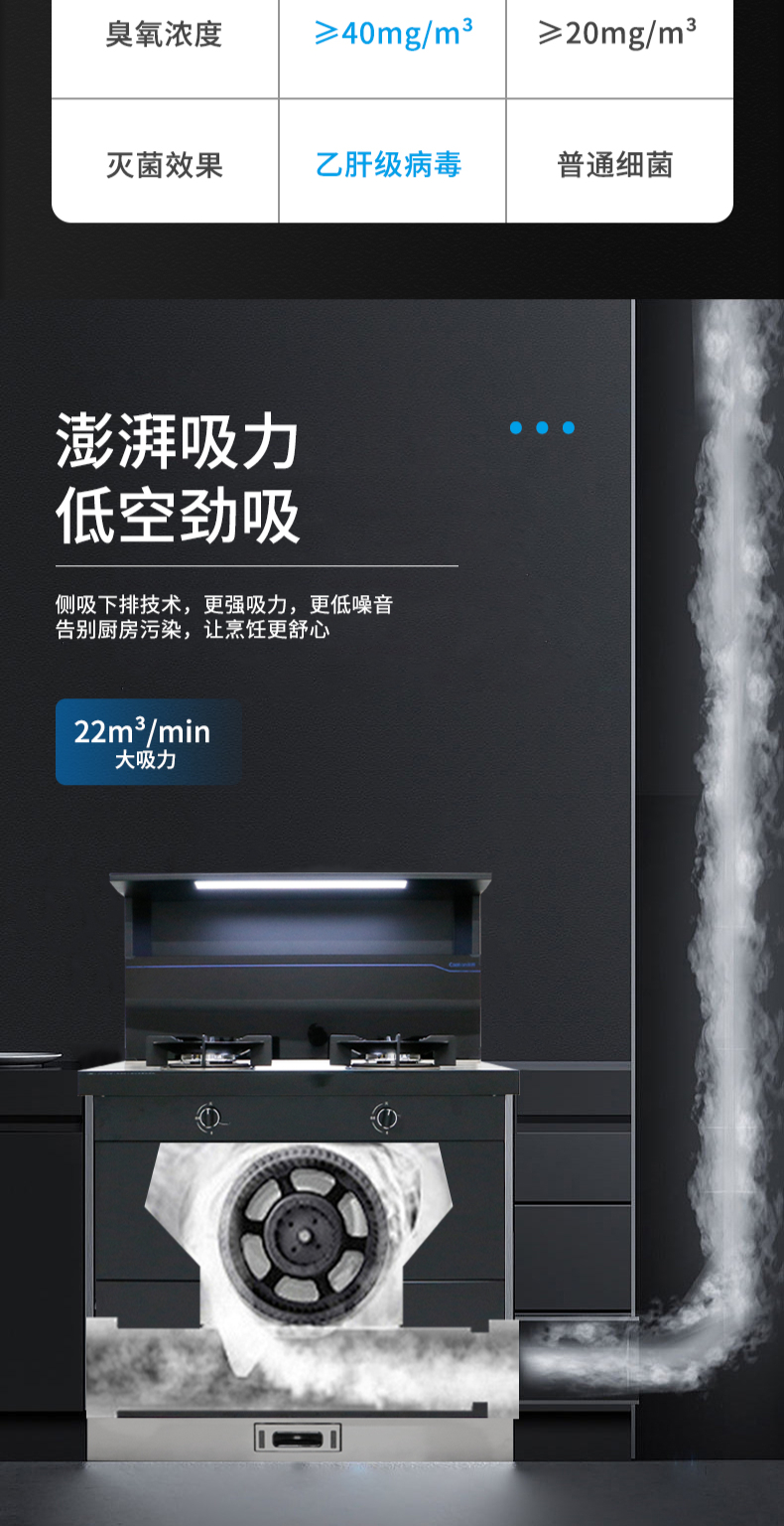 集成科技四合一省空間|108L大容量消毒柜|紫外線+臭氧+高溫三重防護(hù) 伏龍風(fēng)道系統(tǒng)|22m3大吸力|4 8kW火力爆炒|臺面觸控省時省力