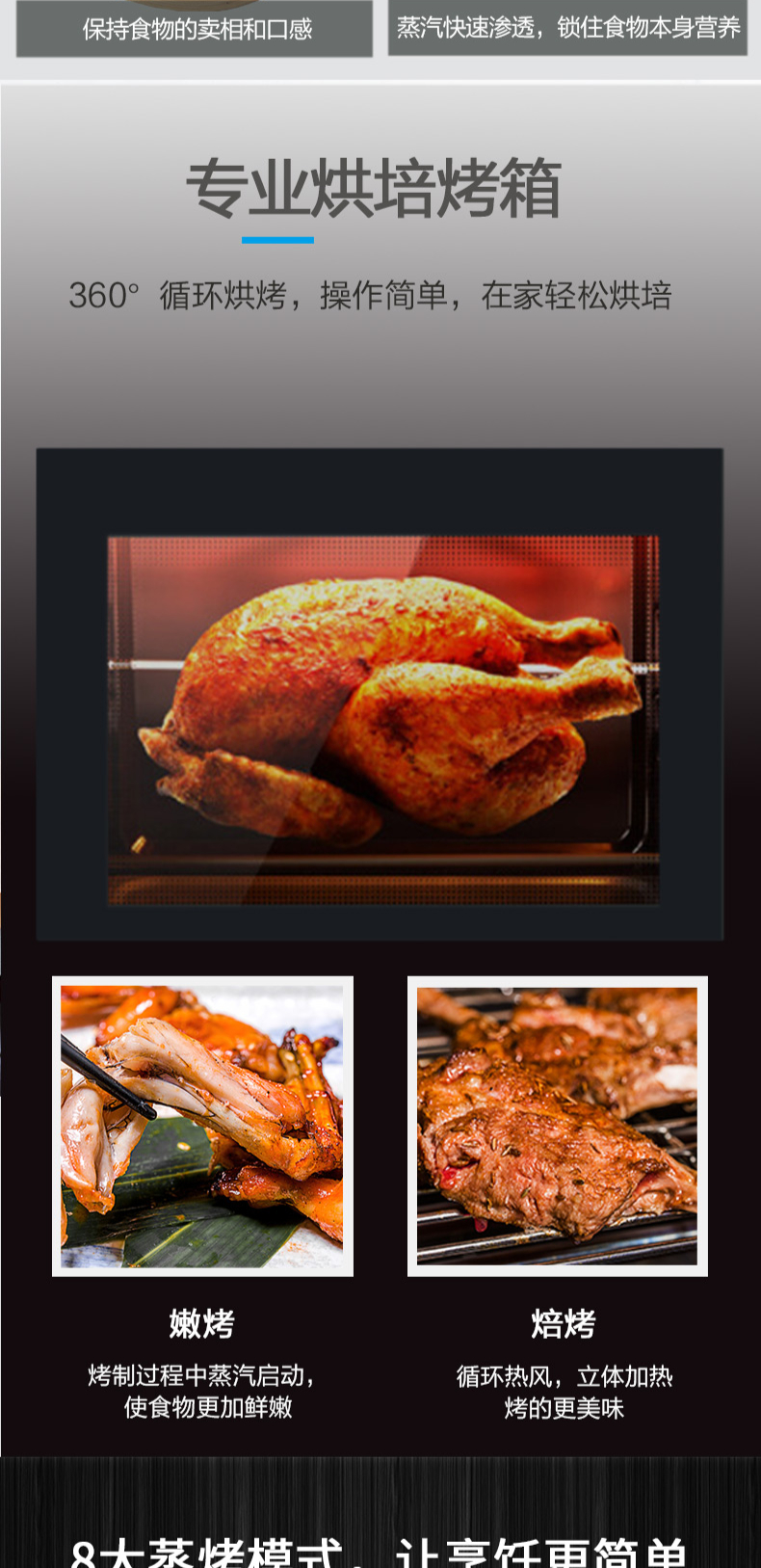 煙灶+蒸烤一體,60L大容量,蒸汽平衡后排。