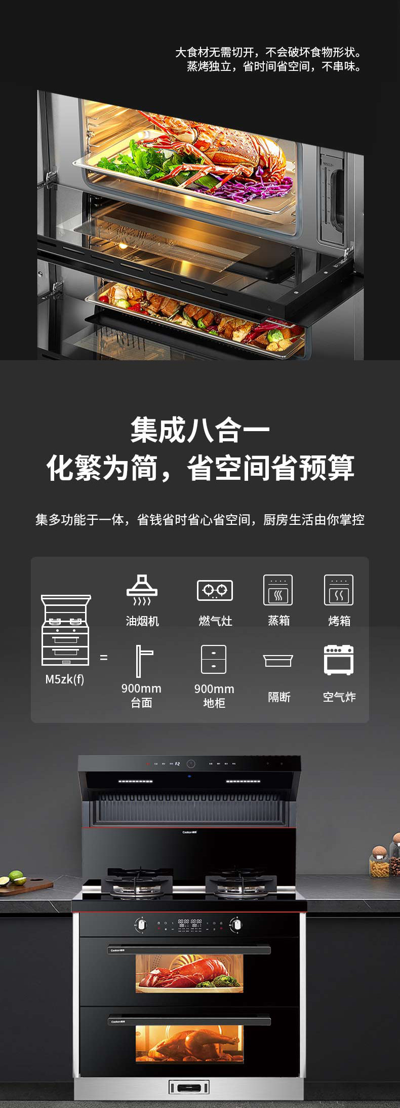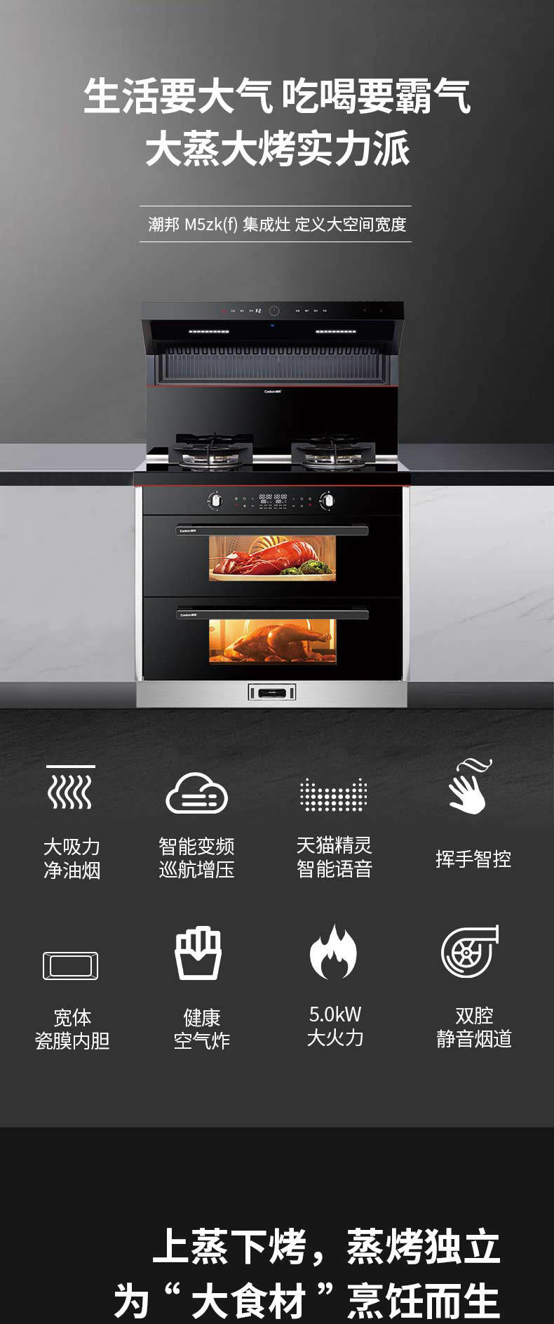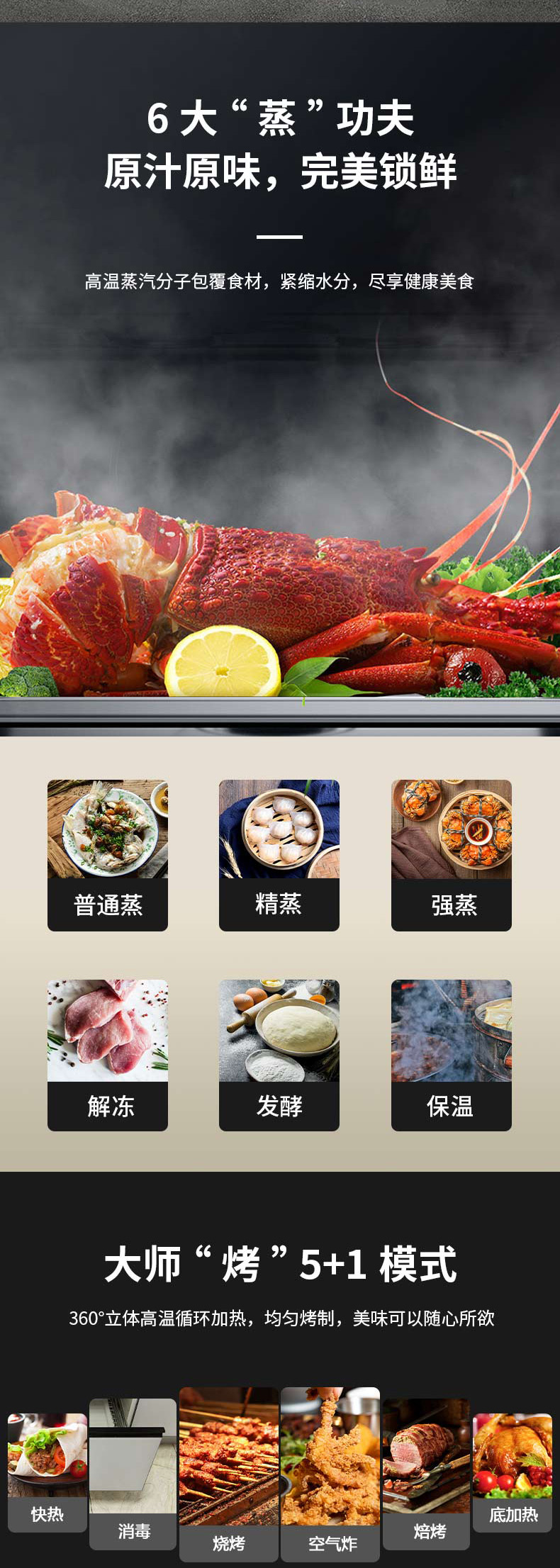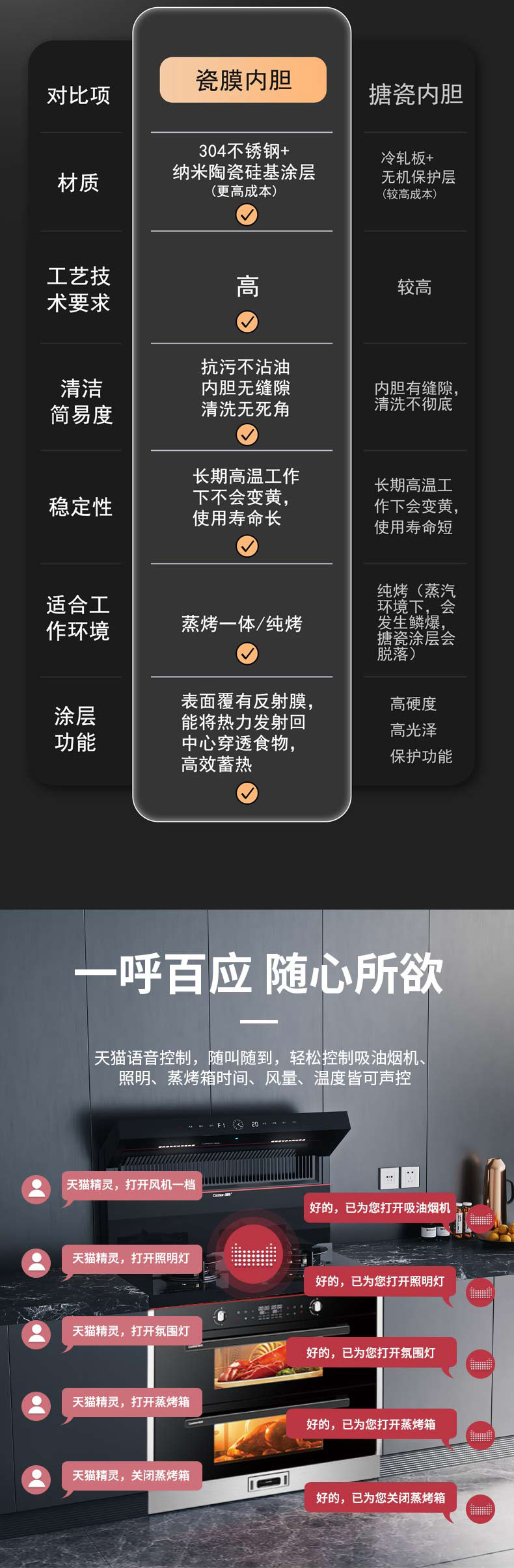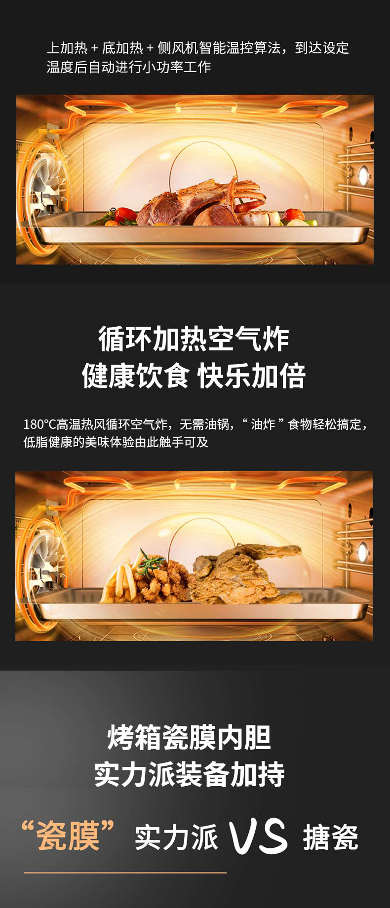 上蒸下烤,蒸烤獨立。智能控制,寬體瓷膜內(nèi)膽。
