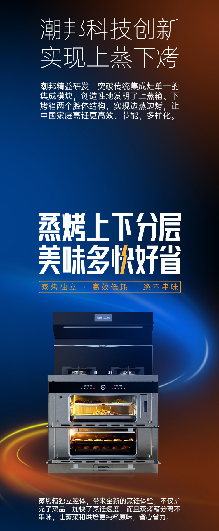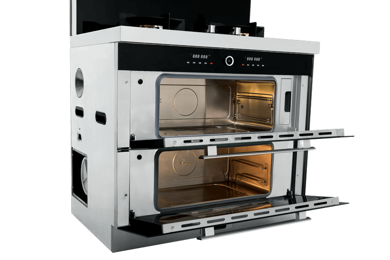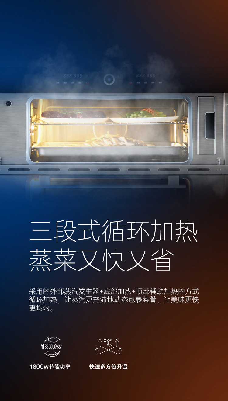 上蒸箱、下烤箱,實現邊蒸邊烤。更高效,更節(jié)能。