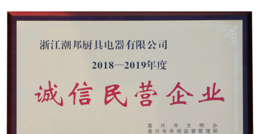 近日,浙江潮邦廚具電器有限公司獲得浙江省嘉興市2018~2019年度誠信民營企業(yè)、海寧市2019年度誠信民營企業(yè)榮譽(yù)證書。 獲此殊榮